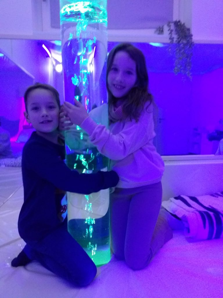 Unser Snoozelen Raum ist Rückzugsort und Wohlfühlraum in einem. Bequem liegend, umgeben von leisen Klängen und Farbeffekten, inspiriert durch Wassersäulen sowie Projektoren und Spiegelkugel werdet ihr angeregt, den Alltag für einen Moment zu vergessen, euch zu entspannen und euch einfach mal fallen zu lassen. Dies alles bietet eine gute Grundlage um ein gutes Miteinander in der Familie zu schaffen und die Bindungsqualität untereinander zu verbessern. Angesprochen und eingeladen sind die ganze Familie, wobei du die Entscheidung fällst, wer aus dem Familienverbund teilnimmt.